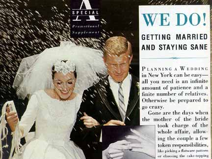 I had an unpleasant memory recur upon reading this issue, bending me out of shape before I bent it. At around page 56 (who can tell where the ad on that page actually belongs?) begins a 23-page advertorial “special promotional supplement” entitled “We Do! Getting Married and Staying Sane.” It includes two bind-in cards that impair easy flipping through the magazine (which, in any event, merely bends its cover even more).